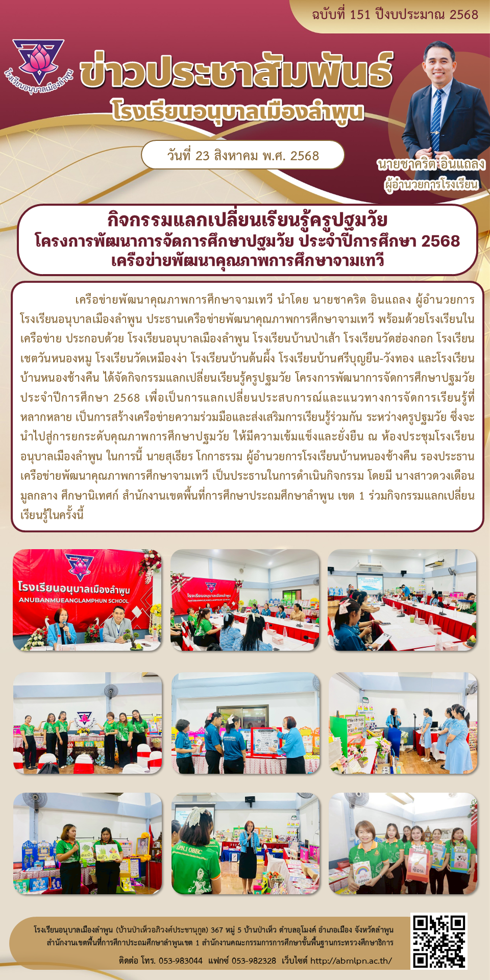 การดำเนินการจัดการเรียนรู้เชิงรุก Active Learning โดยครูโรงเรียนอนุบาลเมืองลำพูน