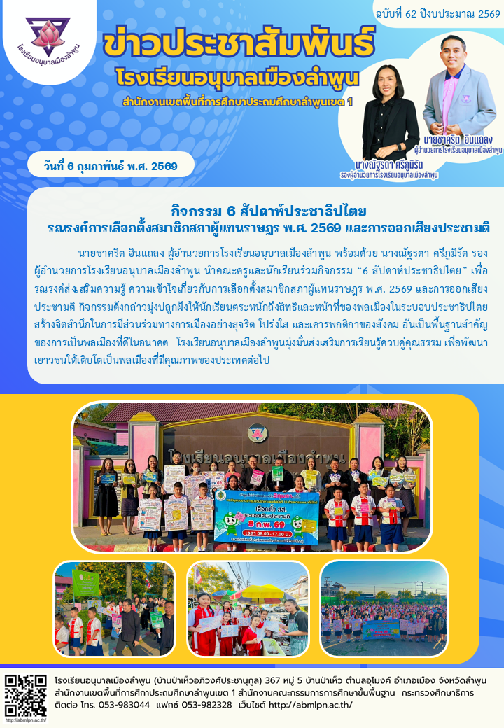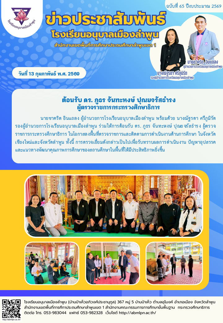 - 27 ก.พ. 2569 ประกาศร่างประกวดราคาจ้างก่อสร้างอาคารเรียน แบบพิเศษ โรงเรียนอนุบาลเมืองลําพูน จํานวน 1 หลัง ด้วยวิธีประกวดราคาอิเล็กทรอนิกส์ (e-bidding)